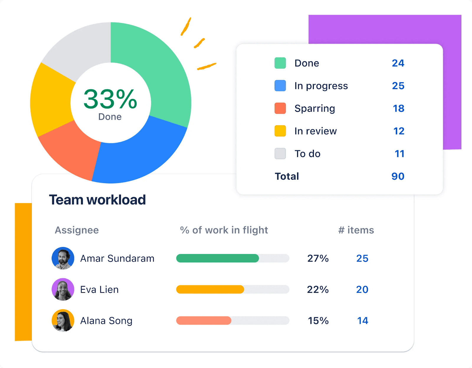 These give users a configurable overview of all the data in a project. This includes the progress of different tasks, their status, and other important metrics that are essential to completing a project on time. Dashboards are also important when you have to give stakeholders and other team members a detailed insight into the project because they help you access everything in one place.