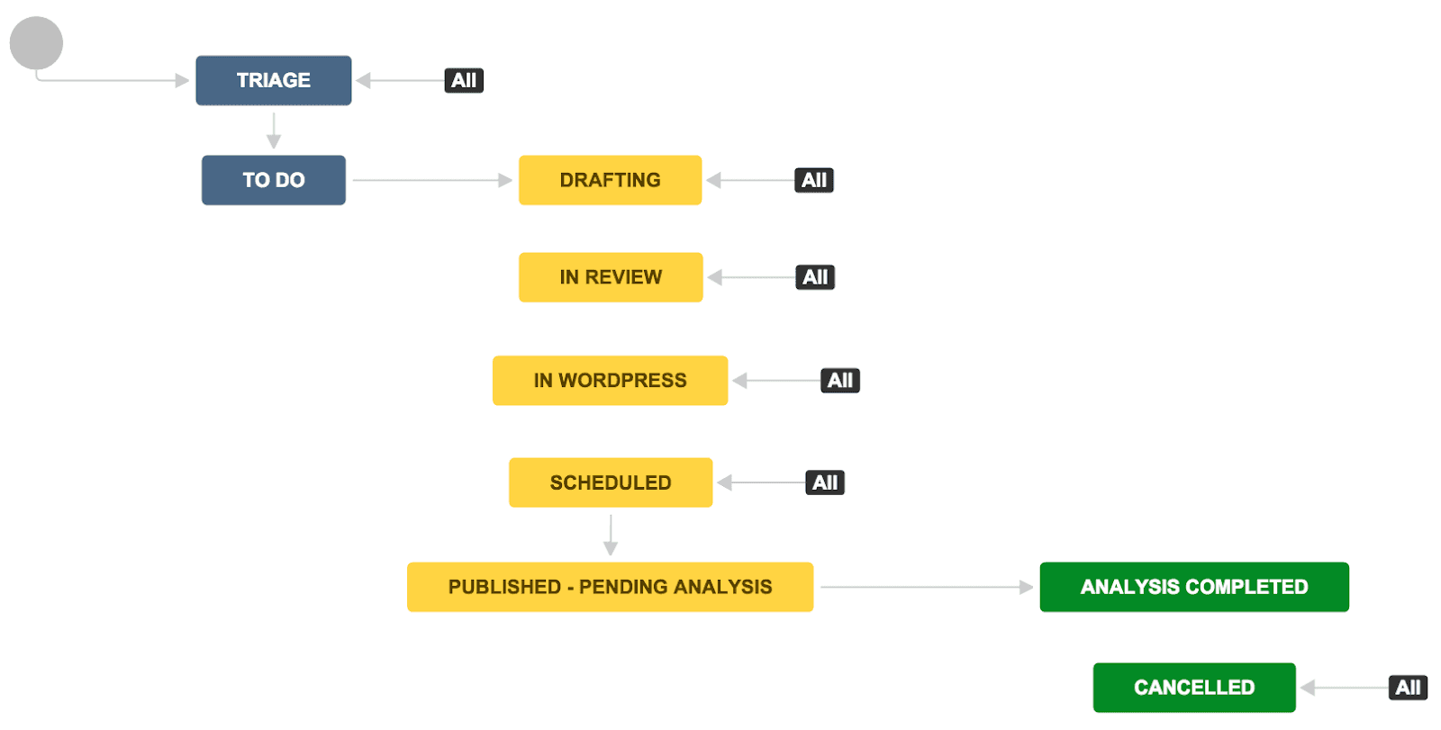To keep up the pace, you should keep the process streamlined. After getting an idea about how your team works, select only the statuses and transitions that are essential for the project. A workflow overloaded with statuses and transitions can lead to confusion. Also, keep in mind that the team members working in the workflow should fully understand and utilize it.